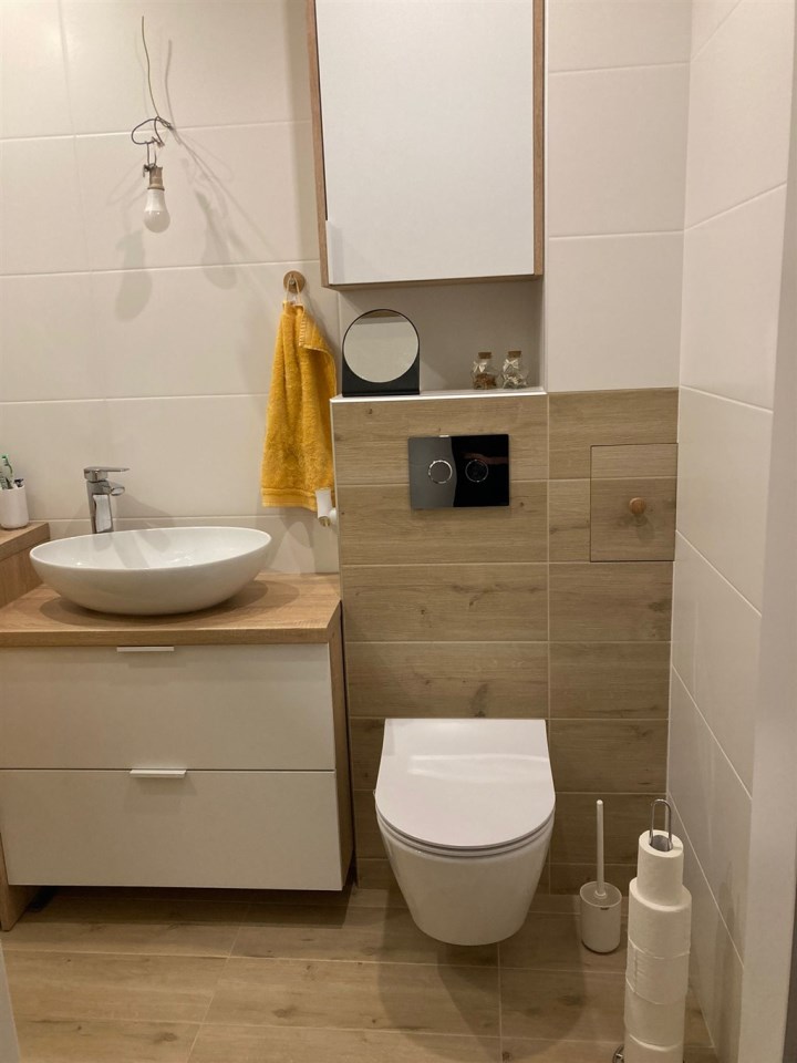 łazienka: Prysznic, szafka umywalkowa, wysokie instalacje wodno kanalizacyjne oraz elektryczne wymienione na nowe